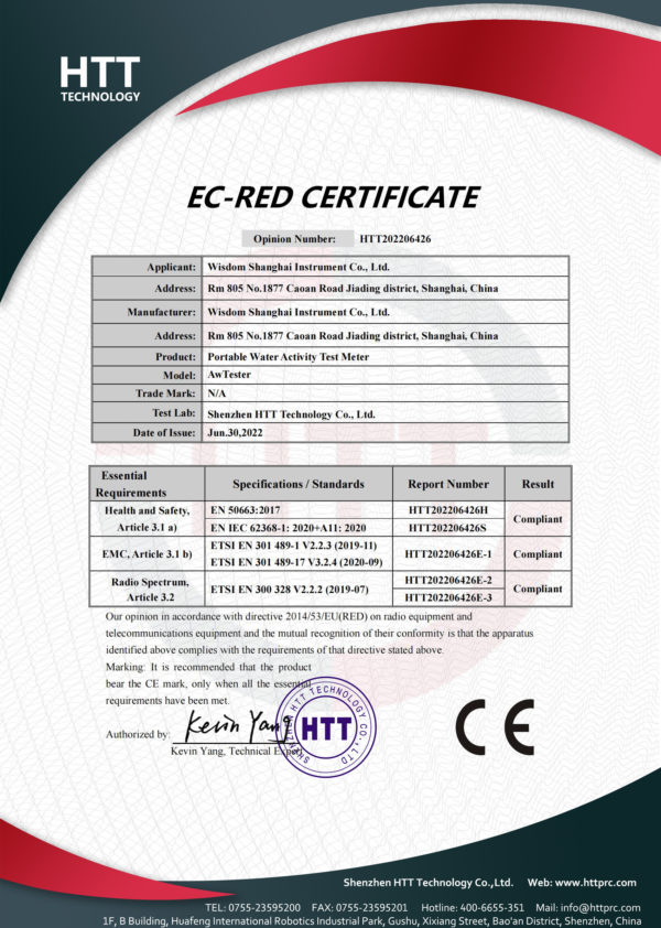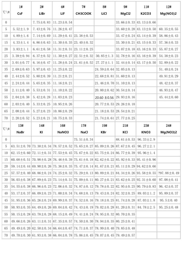 Water activity = relative humidity /100; Simple configuration method: Using deionized water and analytical pure salt, ensure that there is salting out or surplus.
